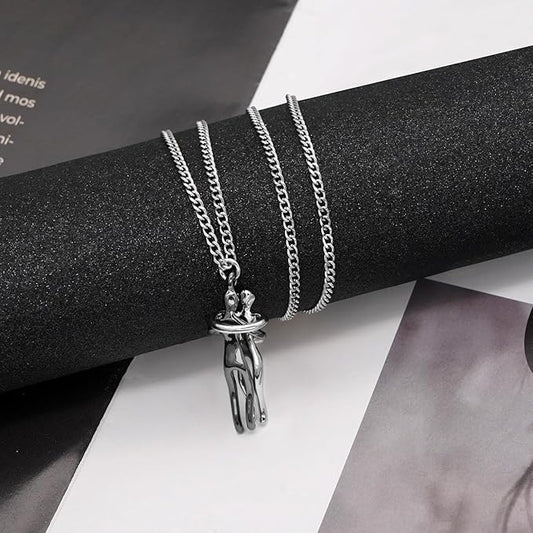 Together Forever Couple Hug Necklace-Silver