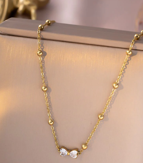Long bow Knot Gold Necklace