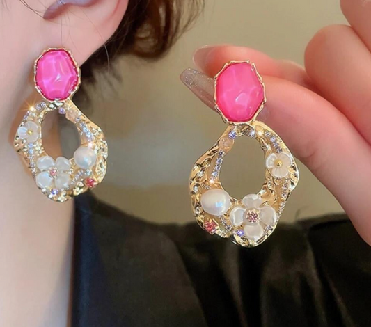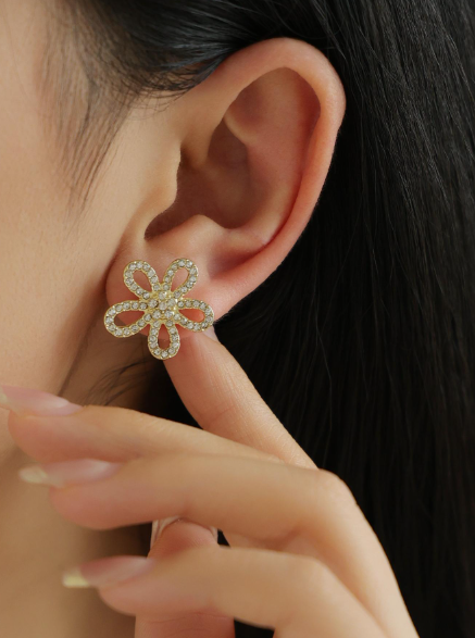 Rhinestone Hollow Flower Petal Earrings-GOLD