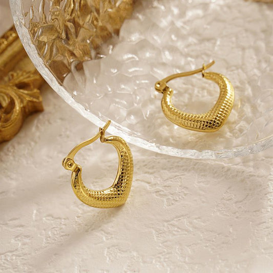 18K Gold Plated Stripe Rectangle Hoop Earrings