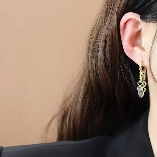 Enamel Black Heart Huggie Earrings