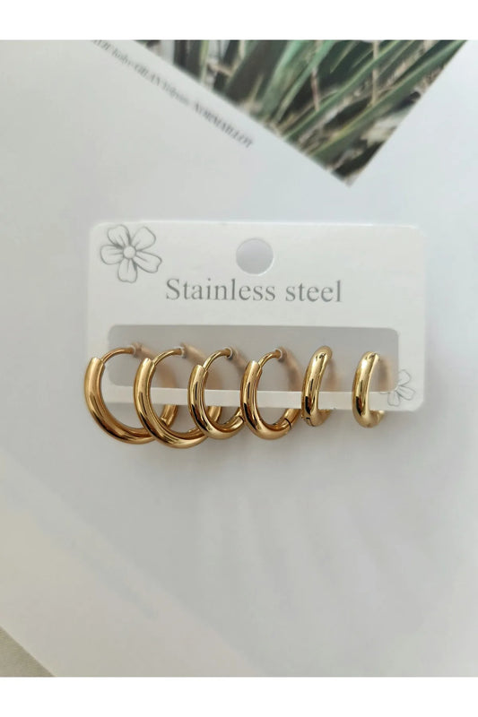 3 Pairs Classic Gold-Plated Minimal Hoop Earrings