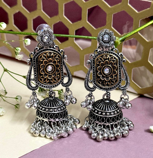 Rhinestone Hollow Flower Petal Earrings-SILVER