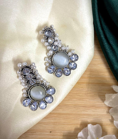 Sold outAmbika Silver Plated Drop- Rani Pink