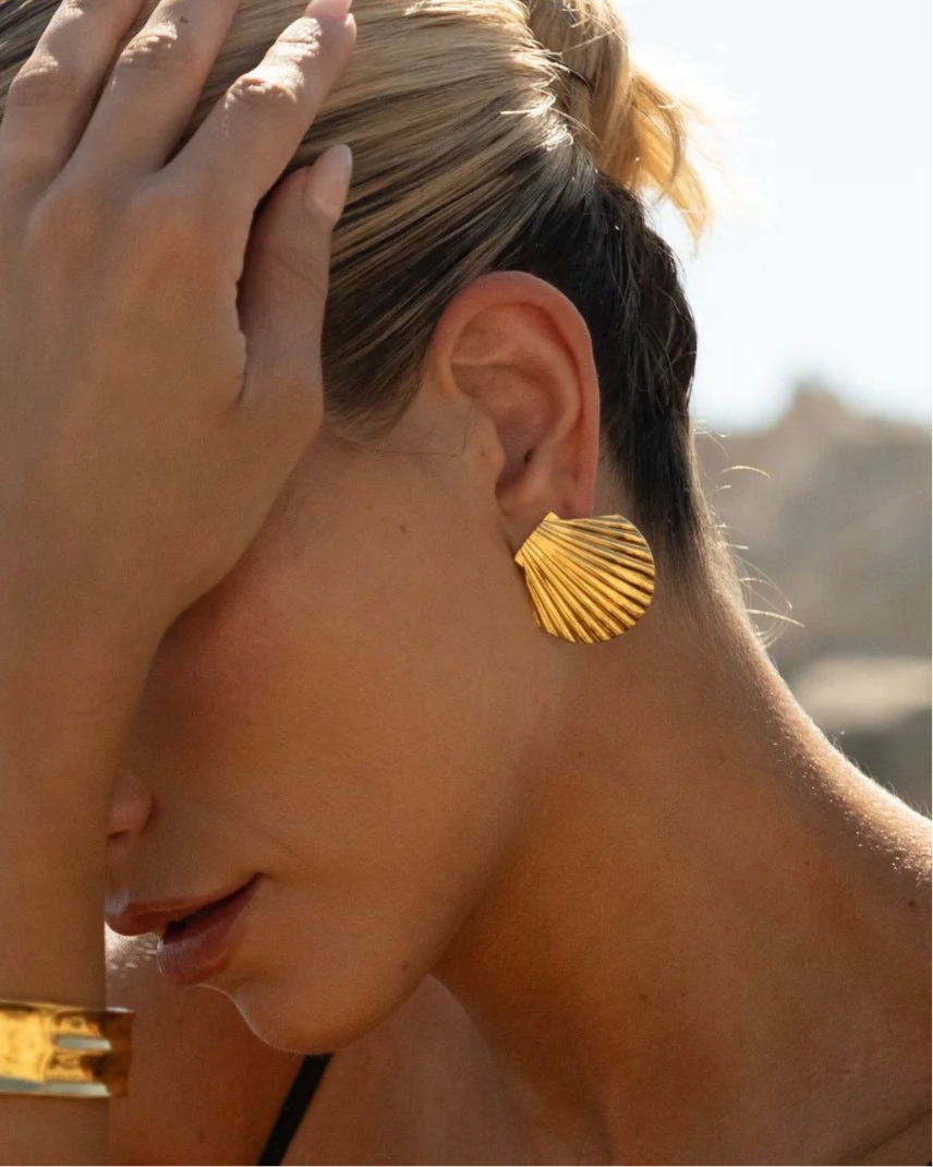 The 18K Gold Plated Shell Stud Earrings are crafted from high-quality, hypoallergenic stainless steel with an anti-tarnish gold-plated finish, ensuring long-lasting shine and durability. Inspired by the beauty of ocean shells, these earrings feature a textured design that adds depth and elegance to any look. Perfect for both casual and formal occasions, they can be worn with everyday outfits, office wear, or evening ensembles, effortlessly enhancing your style. Lightweight and comfortable, these studs are ideal for sensitive skin, making them a must-have addition to your jewelry collection.