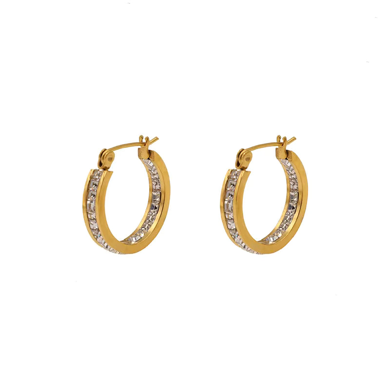 Elevate your everyday style with Beautiful Crystal Hoops. These 18K gold plated hoops, accented with sparkling clear stones, offer a chic and timeless look. Lightweight and versatile, they’re perfect for daily wear or gifting. Approved by pretty girls