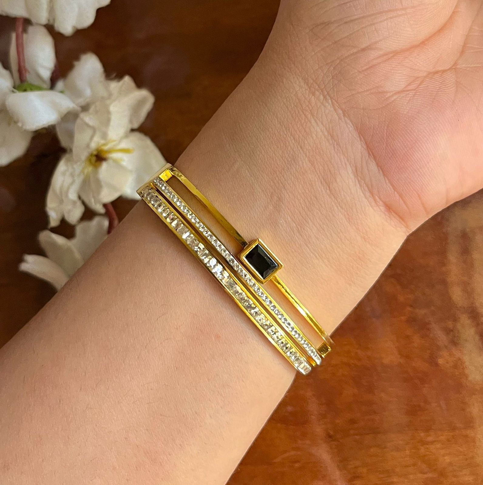 Designed especially for thin wrists (size 2.2–2.4), this elegant bracelet offers a snug yet comfortable fit without looking oversized. Crafted with high-quality plating, it is anti-tarnish, water-resistant, and sweat-proof, making it perfect for daily wear. Lightweight yet durable, this bracelet ensures long-lasting shine and a luxurious finish that complements every outfit.