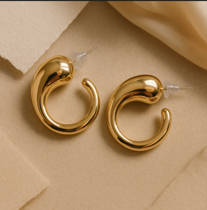 Drip Curve Hoops – Elevate your style with these anti-tarnish, high-quality, gold-plated statement earrings. Designed to add a bold yet elegant touch to any look, these hoops are perfect for everything from brunch dates to wedding parties, or even a glam night out. Their unique molten shape makes them a must-have for the modern, trend-loving soul who wants shine without the compromise.