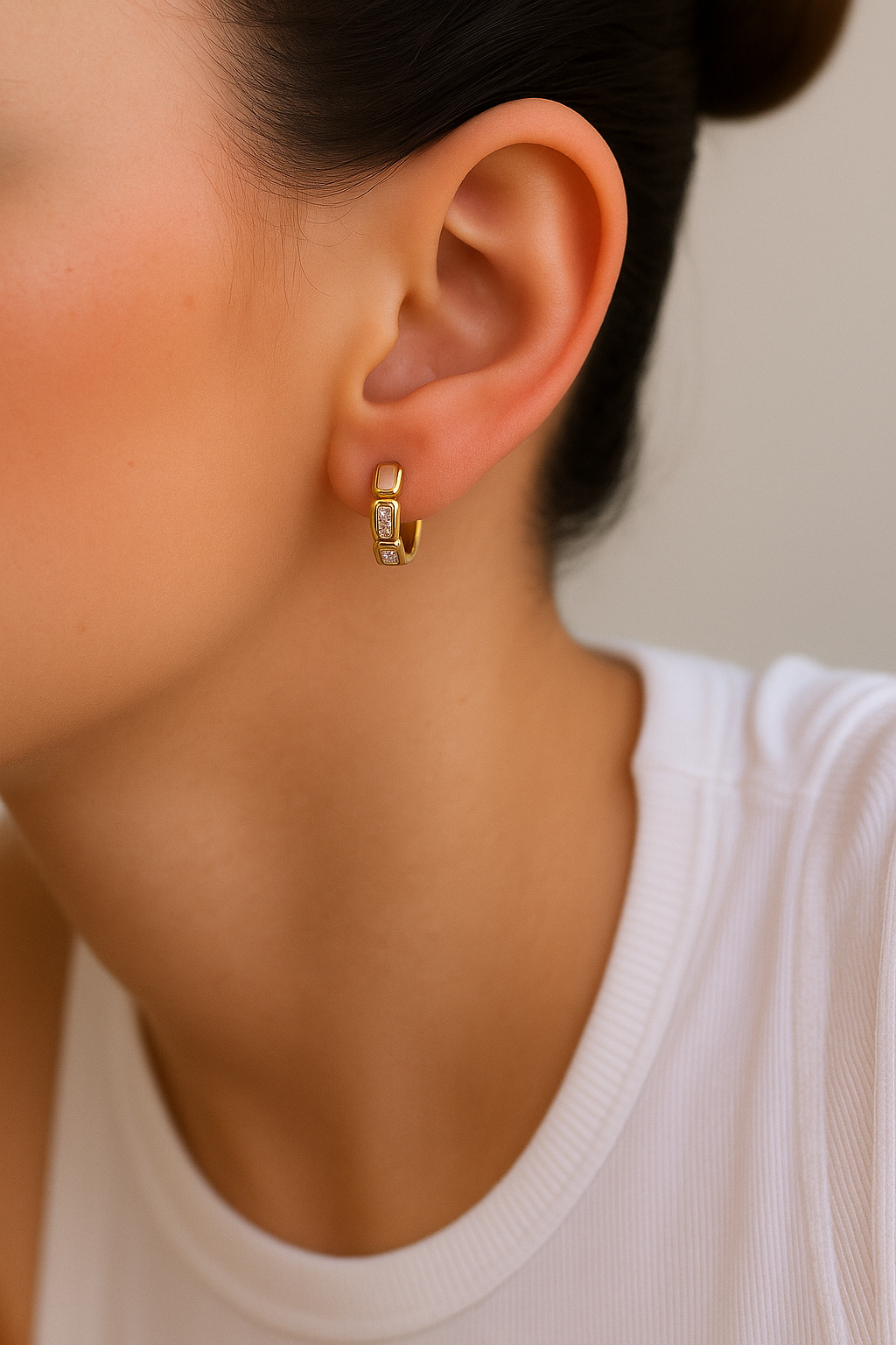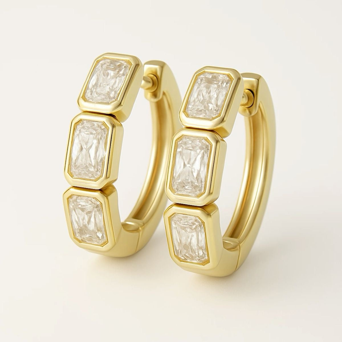 Design: Chic huggie hoops with baguette-cut stone detailing