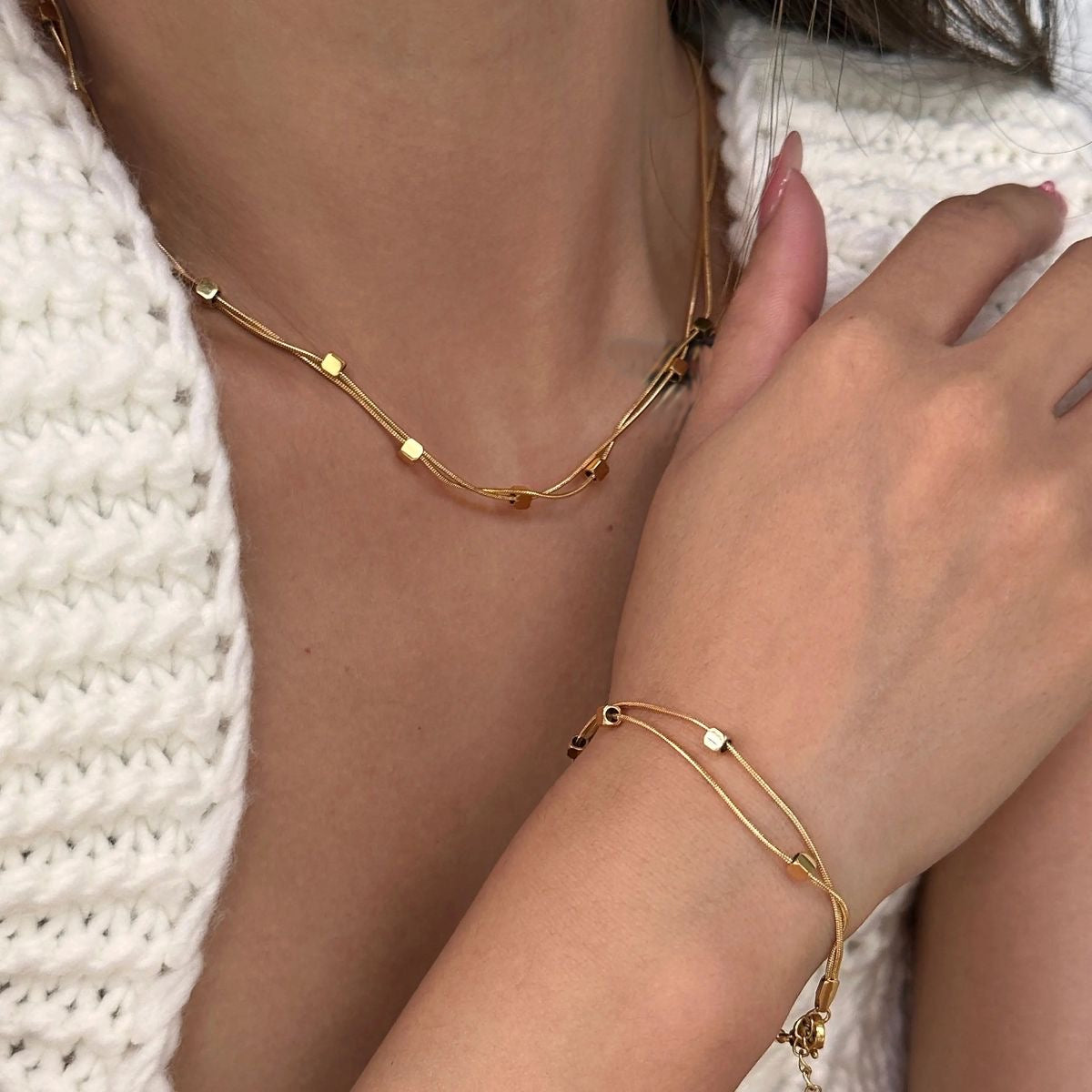 Duo Layer Beaded Chain Necklace
