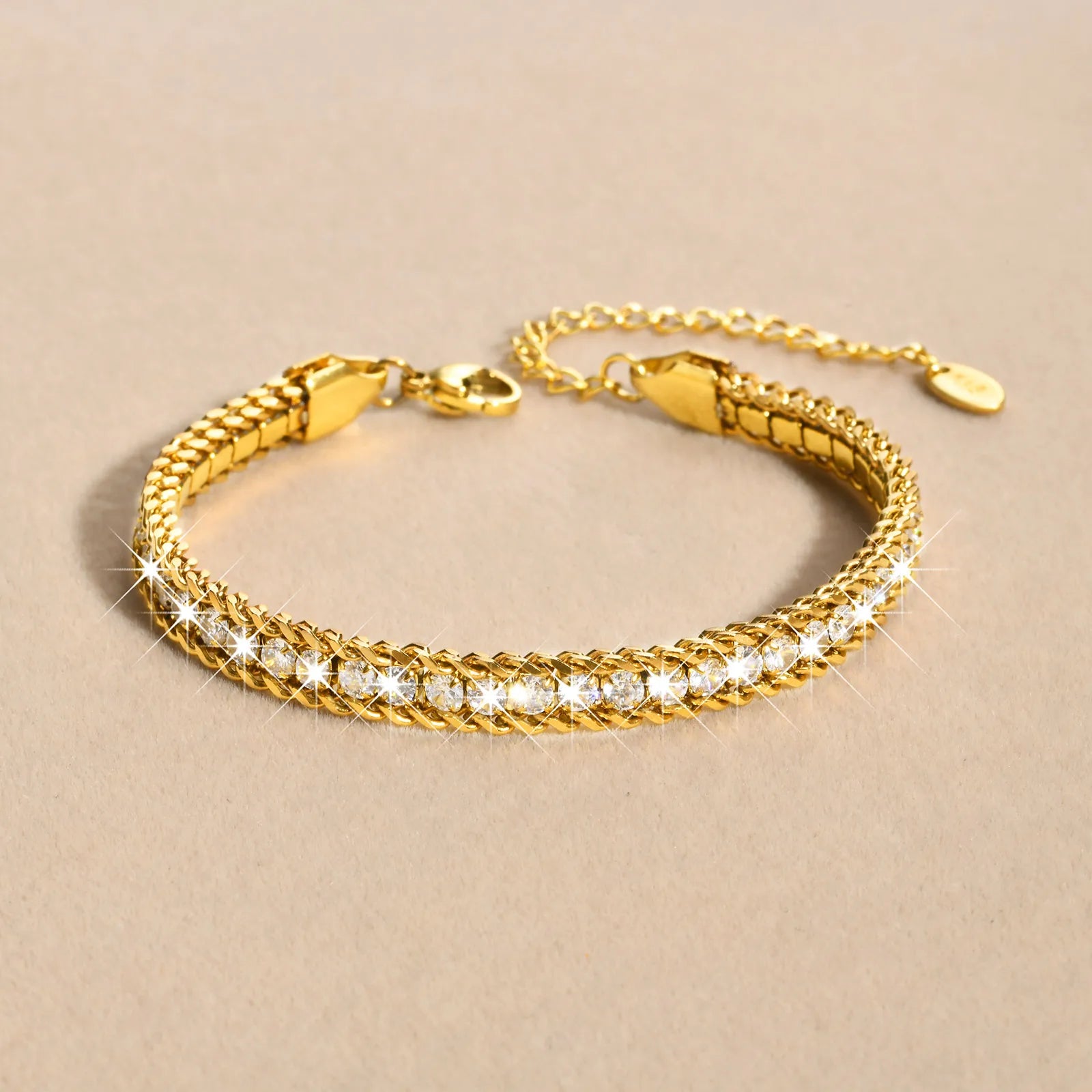 A delicate Diamond chain bracelet featuring a classic tennis design sparkling stones, blending elegance and everyday luxury in one piece.