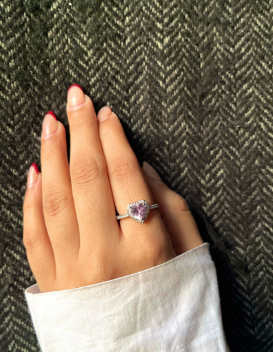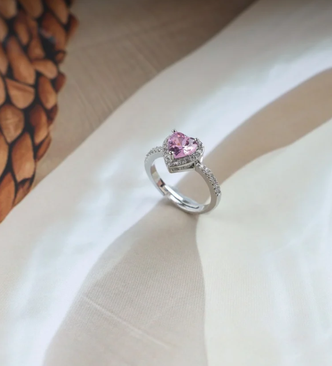 Elegant Pink Heart Stone Silver Ring