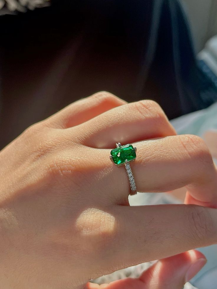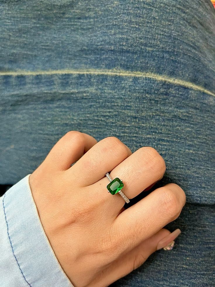 Make a bold yet elegant statement with this rectangle-shaped solitaire ring, featuring a high-quality green gem on a sleek silver-plated adjustable band. Perfect as a promise ring, engagement ring, or a stylish proposal ring, it pairs effortlessly with western outfits—from blazers to dresses. Wear it to college, office, parties, or date nights. A versatile, thoughtful gift for birthdays, anniversaries, or any special occasion.