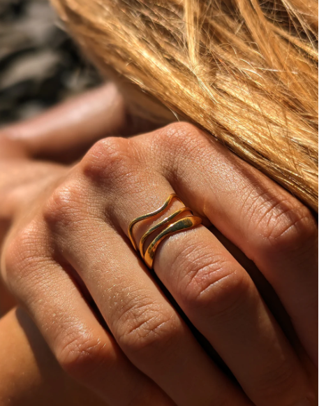 The HoneyWave Adjustable Ring is where soft glam meets bold energy — 18k gold plated, waterproof, hypoallergenic, and totally anti-tarnish. Its smooth wave design adds a luxe twist to any outfit, making it your go-to statement ring for office elegance, college parties, brunch dates, or just leveling up your everyday vibe. Whether you're gifting it to your bestie, bae, or wearing it to feel hot and confident yourself, this demi-fine piece brings that golden glow to every moment. Adjustable and aesthetic, it’s made to shine with you — wherever life takes you.
