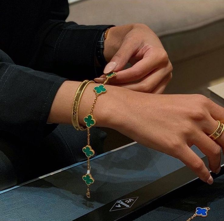 18k Gold plated | Anti Tarnish | Water Resistance | Green Clover Bracelet