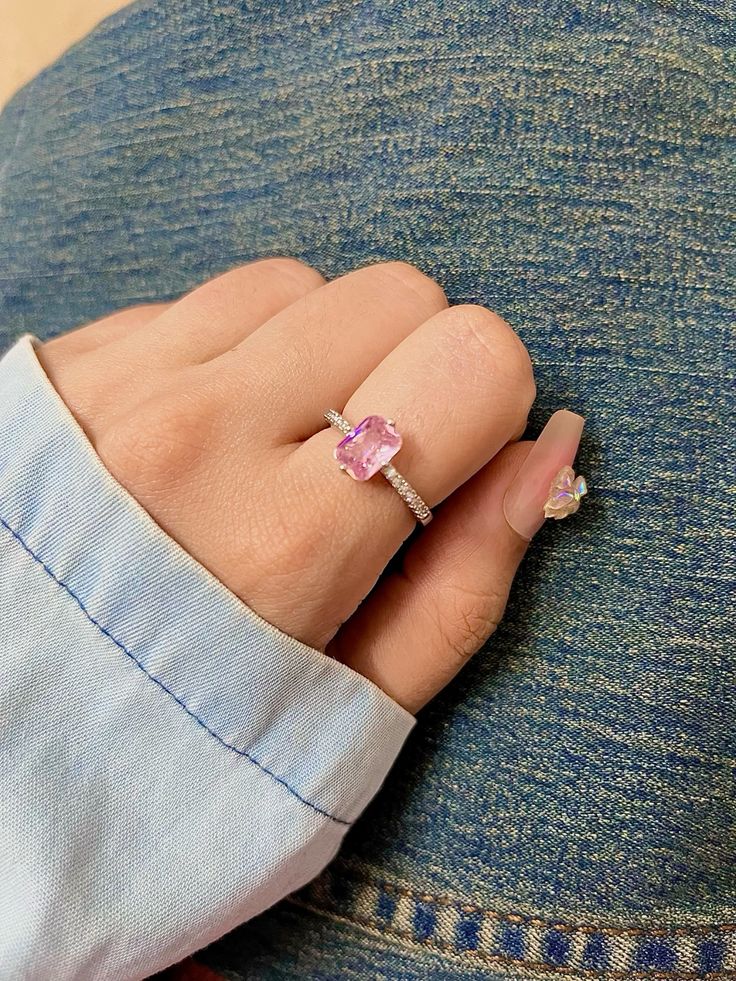 Make a bold yet elegant statement with this rectangle-shaped solitaire ring, featuring a high-quality pink gem on a sleek silver-plated adjustable band. Perfect as a promise ring, engagement ring, or a stylish proposal ring, it pairs effortlessly with western outfits—from blazers to dresses. Wear it to college, office, parties, or date nights. A versatile, thoughtful gift for birthdays, anniversaries, or any special occasion.