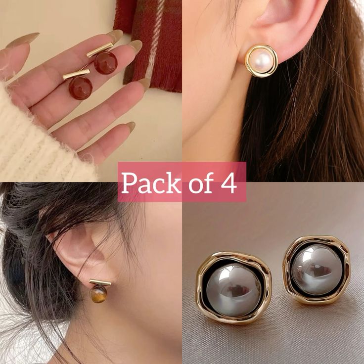 Design: A thoughtfully curated set of 4 earrings featuring sleek, minimal designs perfect for everyday wear. From classic studs to subtle hoops, each piece complements any outfit with effortless elegance.