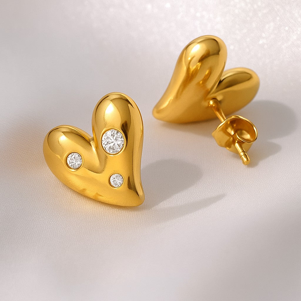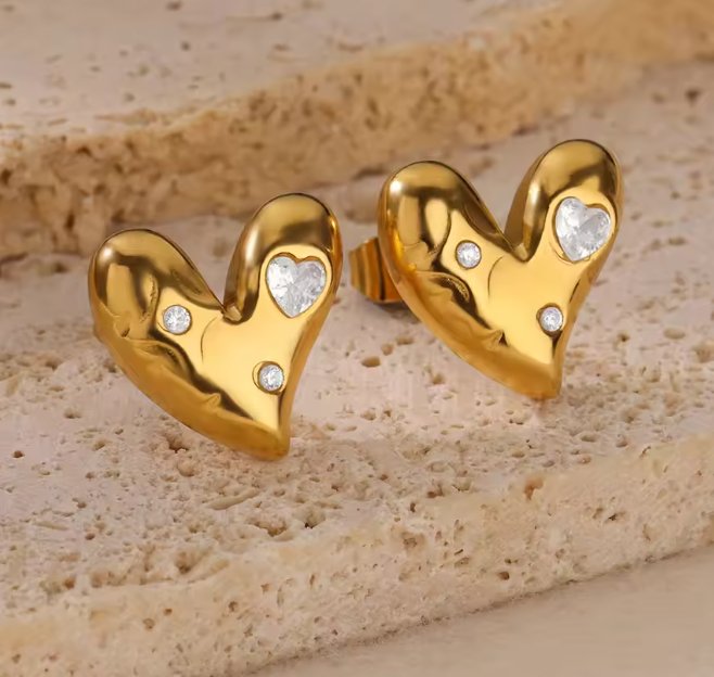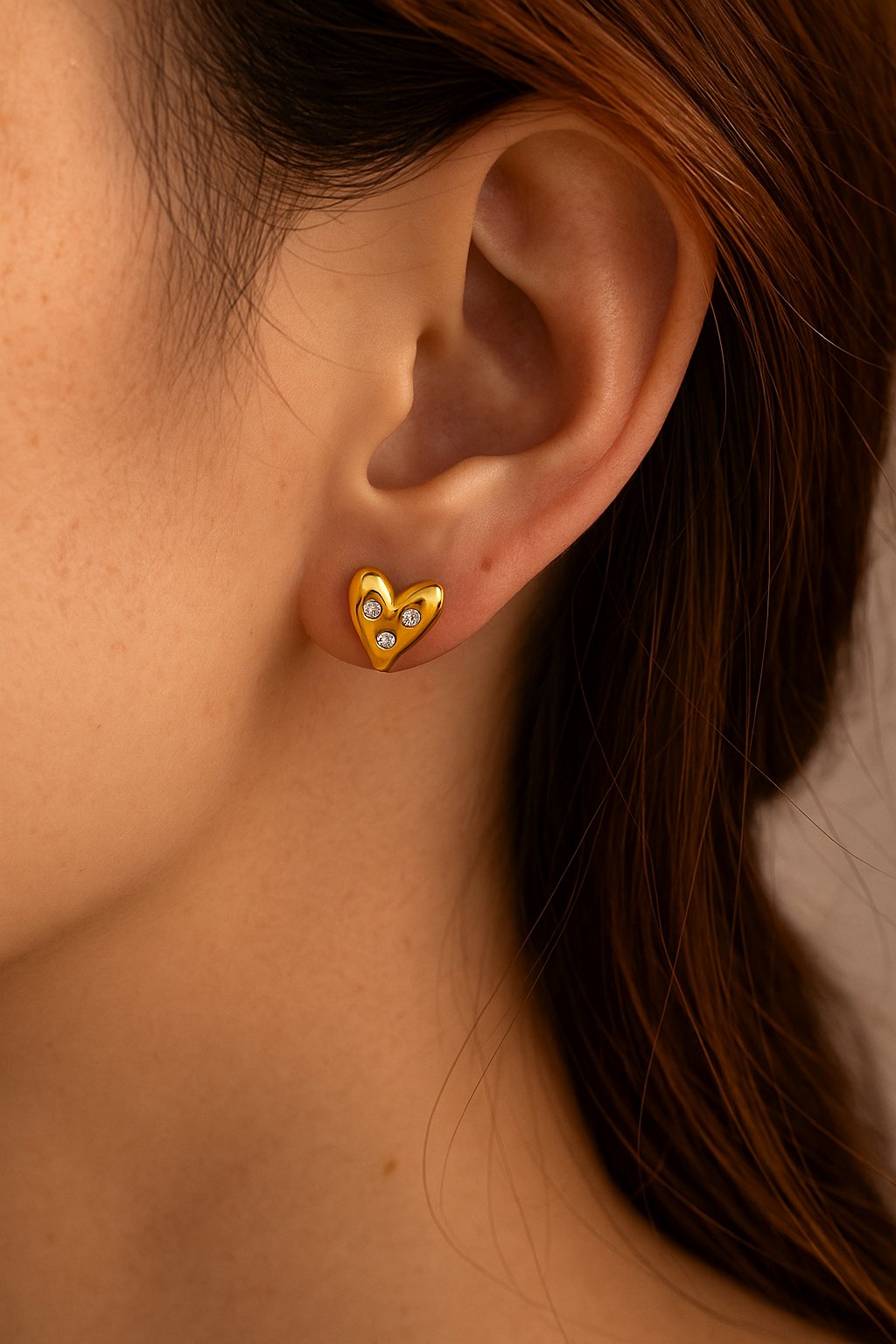 Sweet with a sparkle – our Aeris lil Heart are here to steal hearts. Designed in a cute heart shape and embellished with shimmering stones, these earrings are crafted from hypoallergenic stainless steel with a glossy 18K gold plating and anti-tarnish finish. Perfect for everyday sparkle or a date-night glow!
