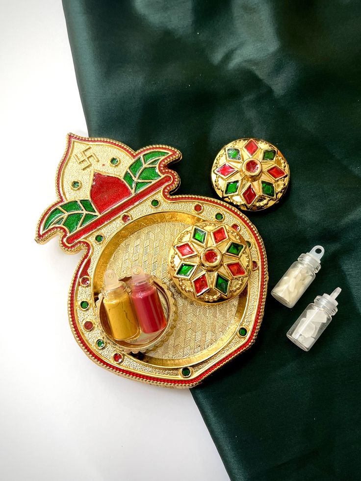 ✨ 1 x Golden Pooja Thali with attached roli-chawal holders