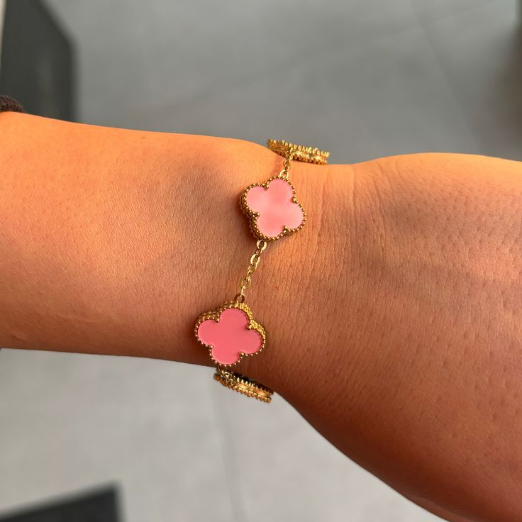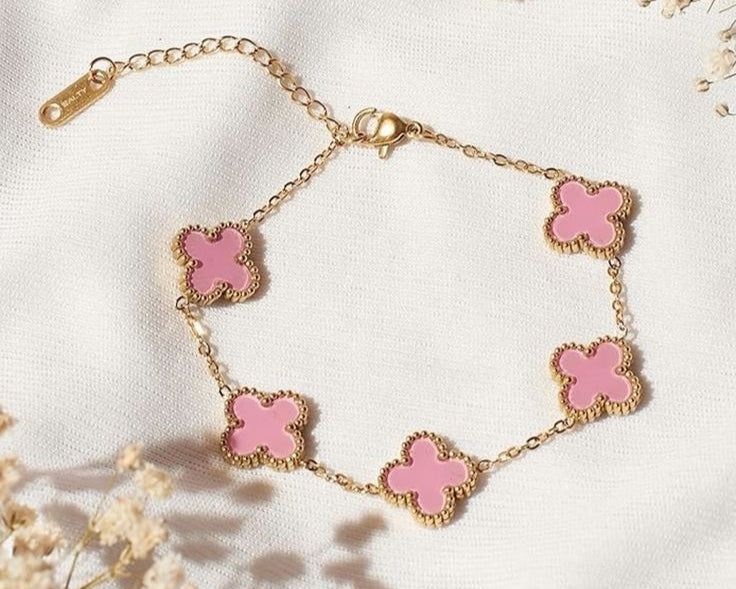 18k Gold plated | Anti Tarnish | Water Resistance | Pink Clover Bracelet