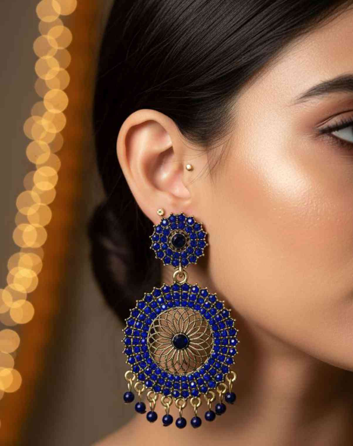 Festive earrings perfect for Diwali, Karva Chauth, Navratri, Rakhi, and wedding season ✨ Lightweight, stylish, and easy to wear – these traditional yet trendy earrings add the perfect festive shine to your ethnic outfits.
